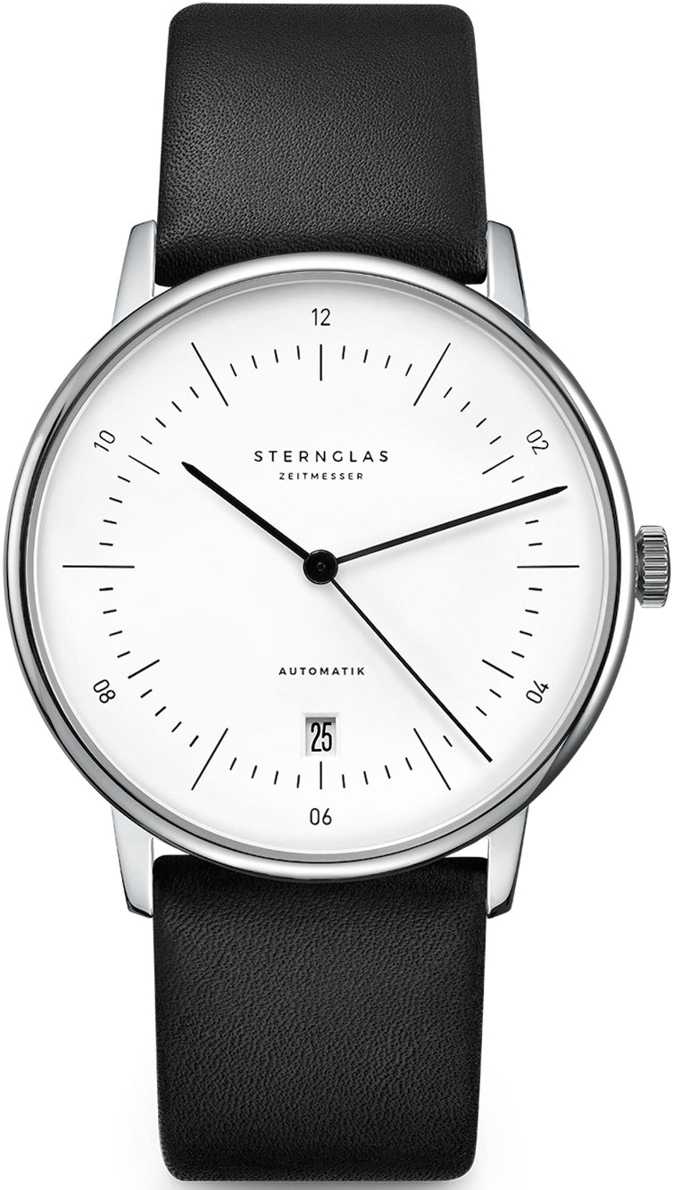 Sternglas Watch Naos SNA01/108. The creation of Sternglas watches timepieces actually begins on paper. Inspired by the philosophy, lines, language of form and timelessness of the Bauhaus movement of the 20th century. Sternglas experiment with a wide range of materials, textures, colours and combinations and are getting closer and closer to the timepiece that meets our standards of aesthetics, quality and technical sophistication.
