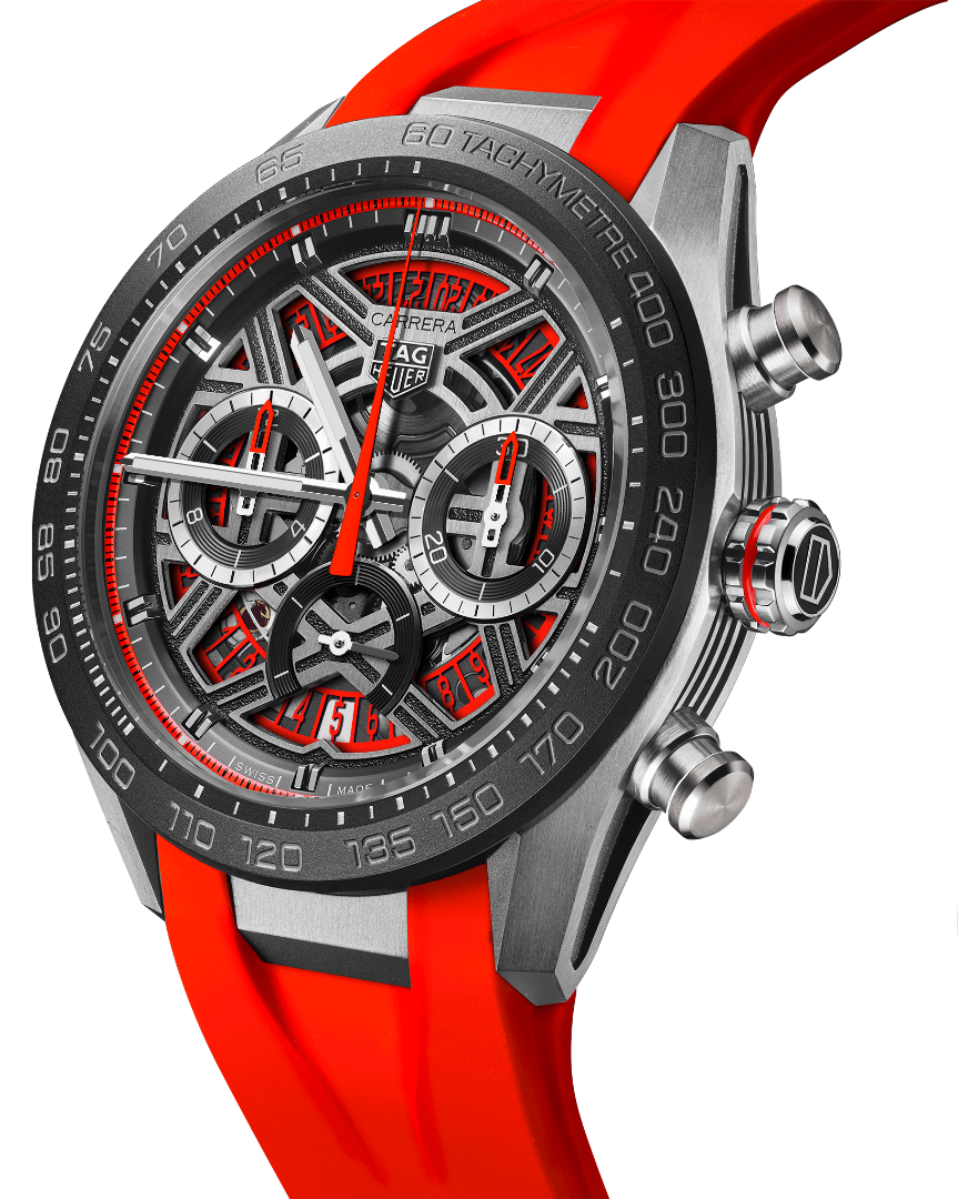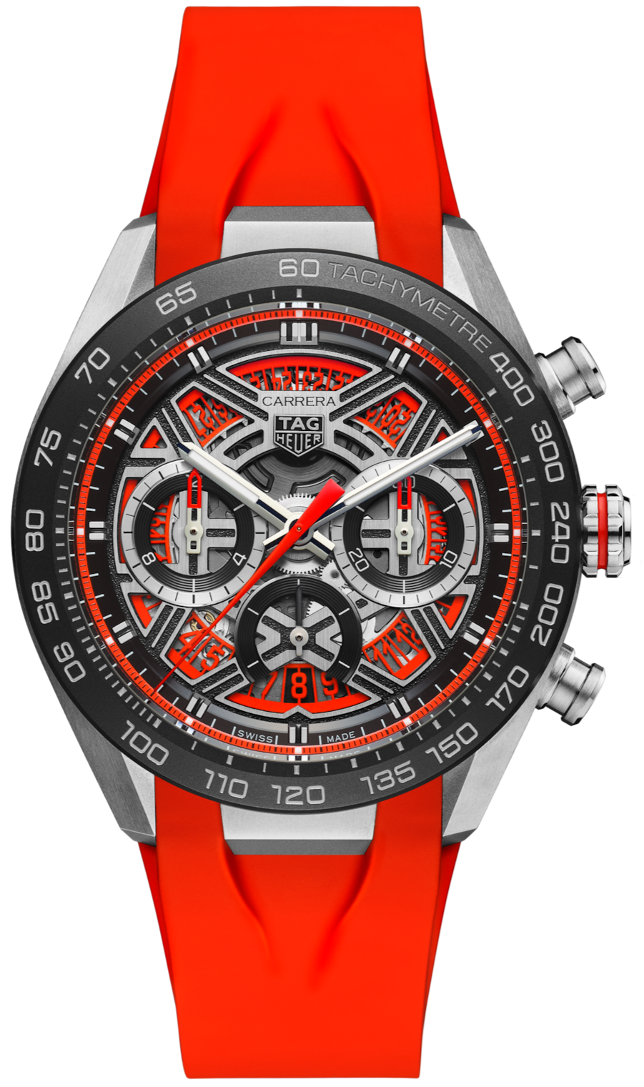 Feel the adrenaline rush of motorsport with this TAG Heuer Carrera Chronograph, where audacity meets precision. The skeleton dial, a nod to the Maison's shield logo, reveals the vibrant mechanics of passion and performance.