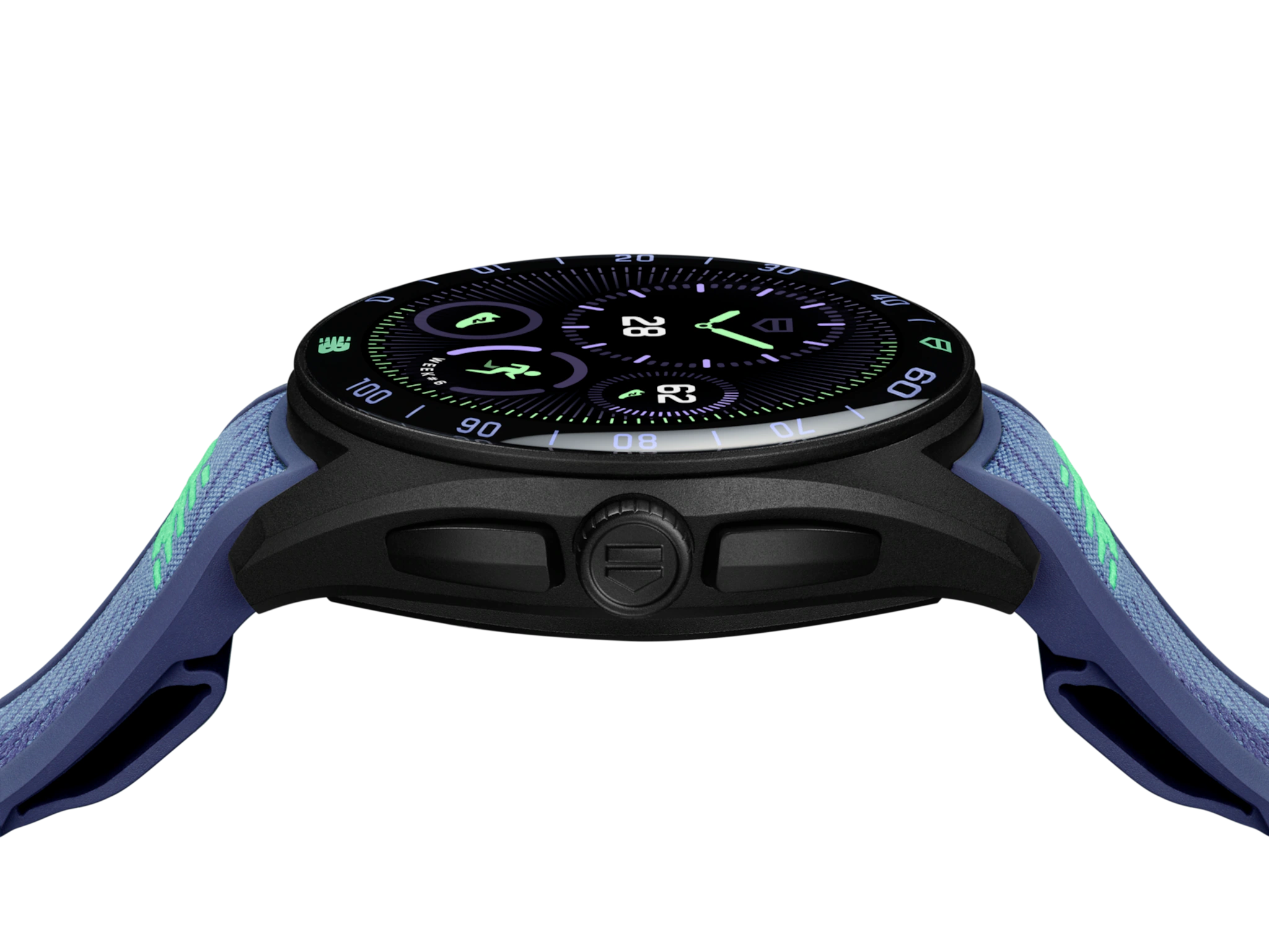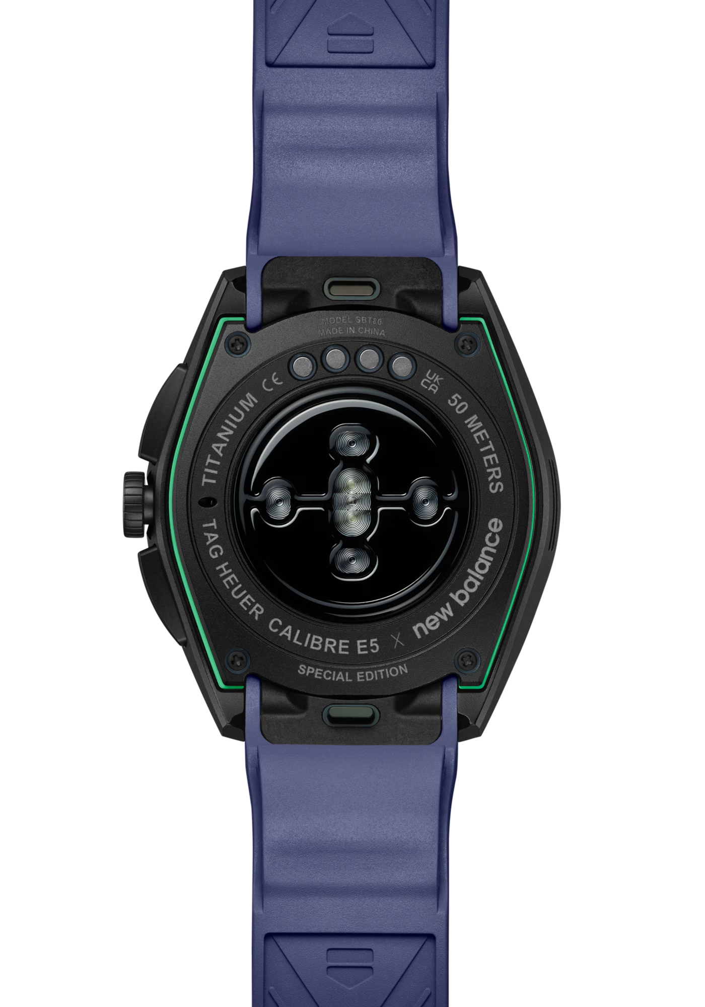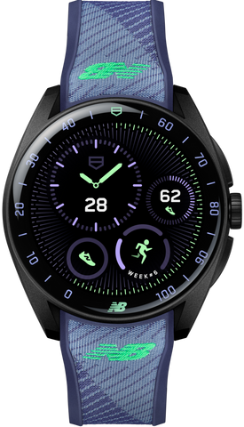 TAG Heuer Connected Calibre E5 40mm X New Balance Edition Watch SBT8082.EB0394. The TAG Heuer Connected Calibre E5 40 mm x New Balance Edition is engineered for peak performance. This special edition smartwatch features a lightweight black DLC titanium case, a comfortable and sporty bi-material strap, and a suite of smart features powered by the TAG Heuer OS, a proprietary user experience and interface developed entirely in-house. With dedicated New Balance training plans, best-in-class GPS, and advanced tracking capabilities, the TAG Heuer Connected Calibre E5 40mm x New Balance Edition empowers you to push your limits and achieve your goals.