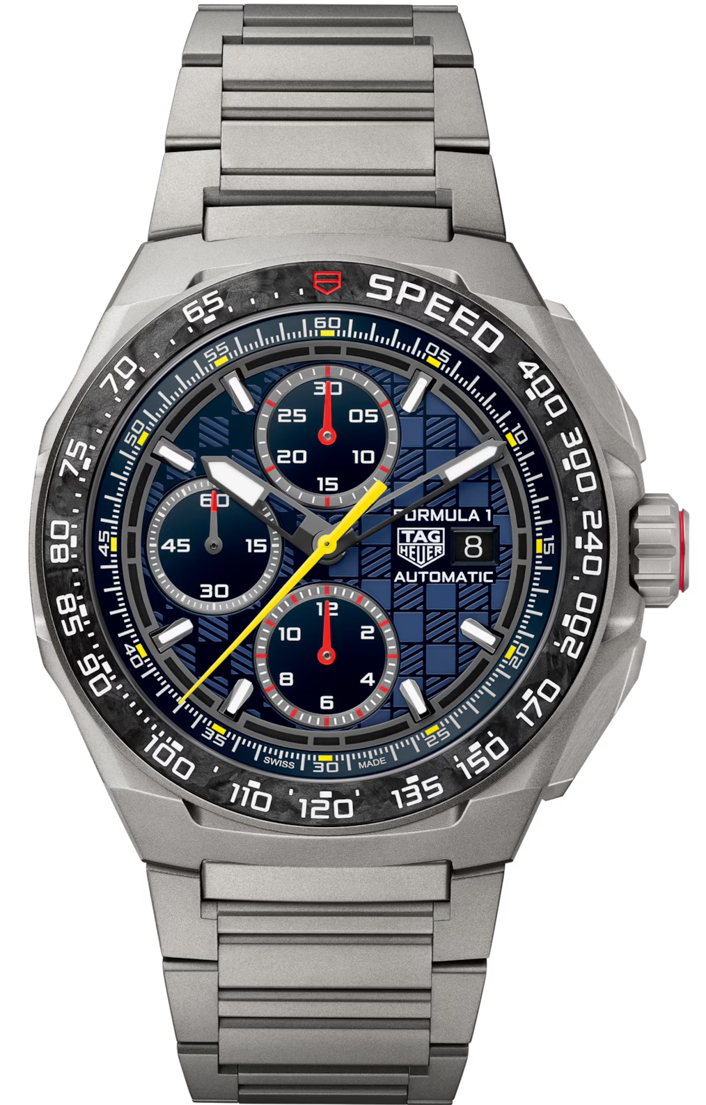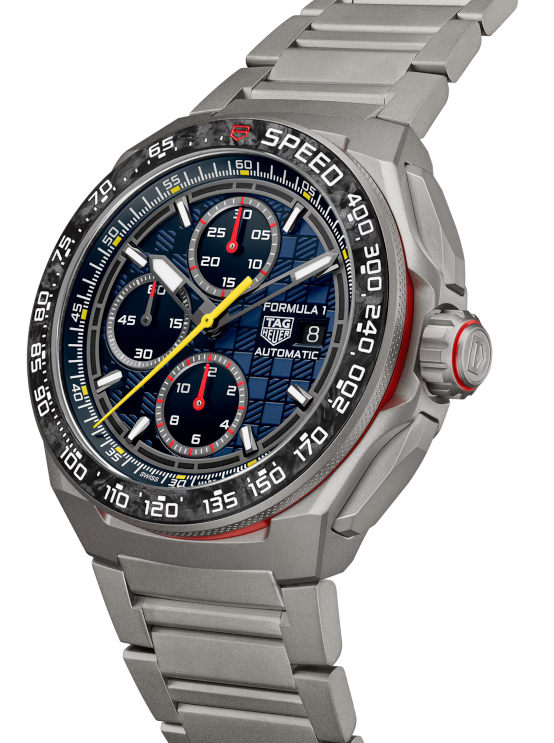 TAG Heuer Formula 1 Chronograph Watch CBZ2080.BF0009. Crafted in ultra-lightweight titanium, this TAG Heuer Formula 1 Chronograph celebrates the adrenaline-fueled partnership between TAG Heuer and Oracle Red Bull Racing. Combining precision, bold design, and endurance-ready performance, this co-branded 44mm timepiece is built for those who thrive on speed.