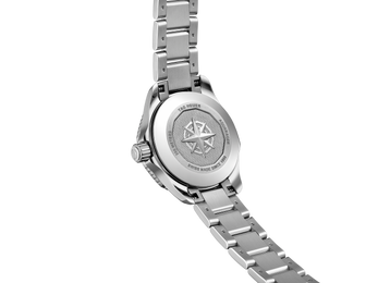 A total of 11 beautiful scintillating diamond dot hour markers bring the rich green dial of this stunning lady’s TAG Heuer Aquaracer watch to life. The TAG Heuer Aquaracer Professional 200 watch reference WBP2415.BA0622 is a 30mm companion for the female wrist and has been crafted from stainless steel to offer a robust and sporty option for pairing with casual attire. The Aquaracer watch for women features a unidirectional rotating bezel and is topped with a protective lens of scratch resistant and anti reflective sapphire crystal glass for ultimate protection over the dial. An intense green display forms the backdrop to a set of Super LumiNova filled central hour and minute hands and a second hand with a luminous tip. The hour markers of the dial are also luminous, contrasting with the minute hand for easy timekeeping at night.