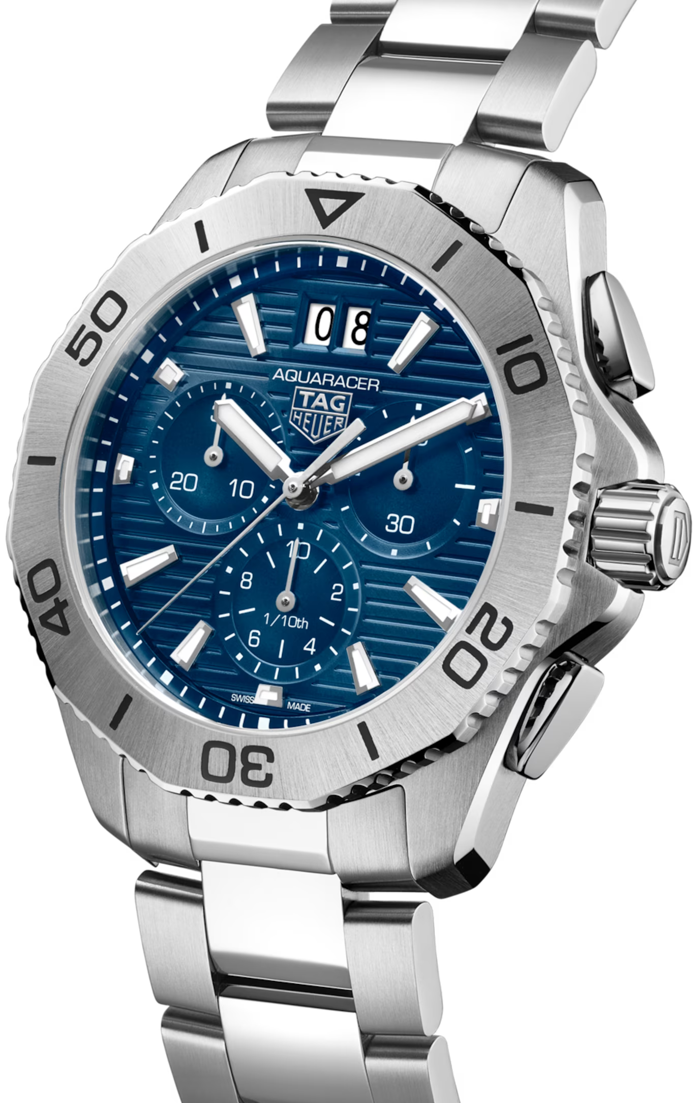 TAG Heuer Watch Aquaracer Quartz Chrono CBP1113.BA0627. Crafted for those who seek thrill and adventure, this TAG Heuer Aquaracer epitomizes precision and rugged elegance. Its distinctive, radiant blue dial complements the watch’s versatile and resilient design. The perfect fit for relentless explorers.