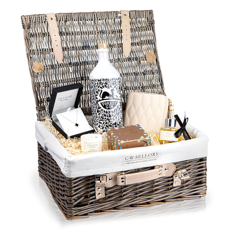 Capturing the breath taking historical location of the Ladybower Reserve, nestled in the picturesque Upper Derwent Valley in Derbyshire, our special Ladybower Hamper by C W Sellors is a popular gift idea for a loved one or friend. A classic wicker basket is enrobed with our exclusive C W Sellors cotton lining and each arrangement is assembled by hand and with love by one of our skilled experts in house. This luxury gift hamper features a bed of biodegradable and environmentally friendly wood wool for which each specially chosen luxury gift item is displayed upon. The hamper provides a unique selection of products, creating a memorable and personalised gifting experience without the need for any words.