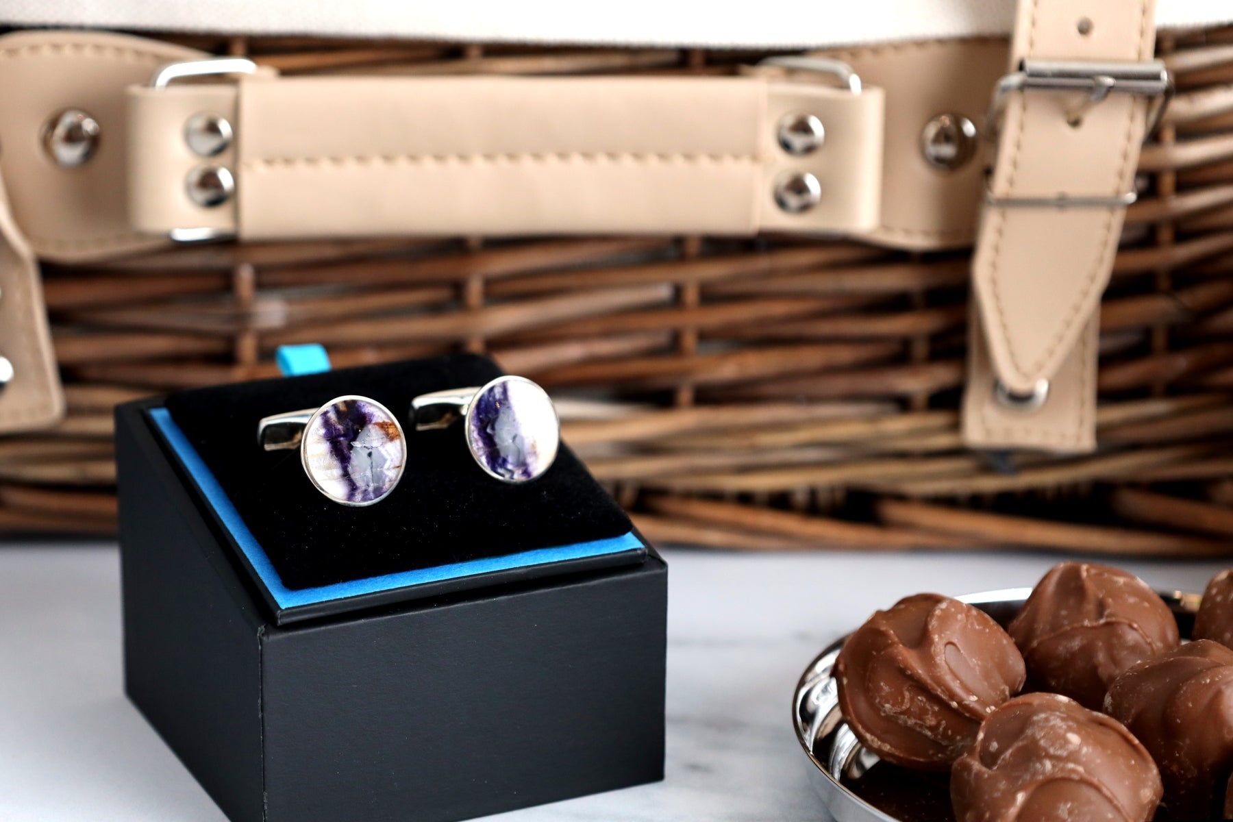 - C W Sellors Sterling Silver Blue John Round Cufflinks (CL420)