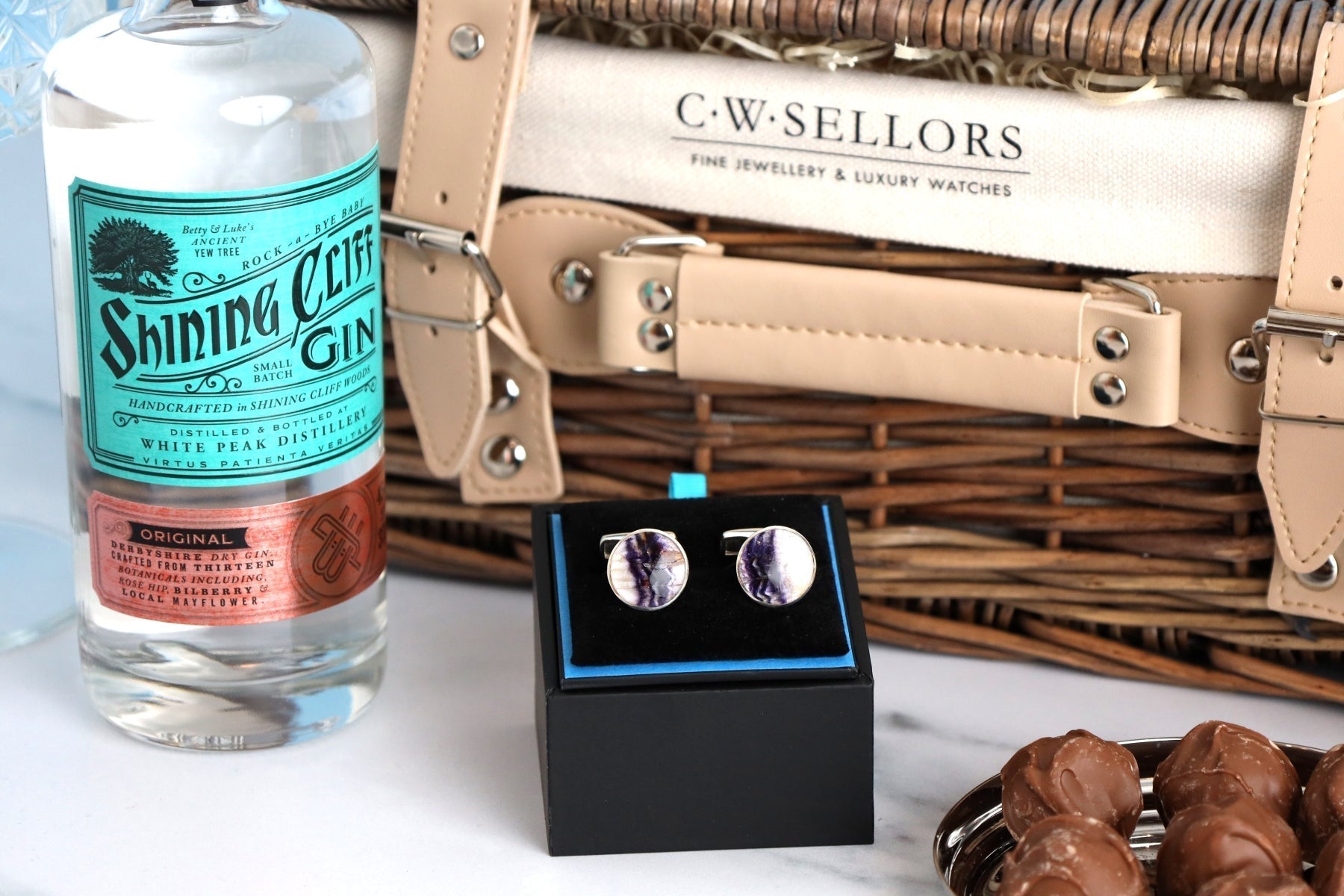 The C W Sellors Tissington Hamper features a pair of elegant men’s cufflinks crafted from polished sterling silver. The luxury cufflinks for men showcase a piece of perfectly round Blue John in their centres, a rare gemstone found only in two caves within the Peak District. For an evening unwinding by the roaring fire, those who have taken a walk along Tissington’s picturesque trails may wish to relax with a box of Holdsworth Milk Chocolate Sea Salt Caramel Truffles and a glass of Shining Cliff Dry Gin. The artisan gin completes the Tissington Hamper perfectly since it is inspired by the woodland and hedgerows of Shining Cliff Woods and incorporates a unique blend of 13 botanicals.