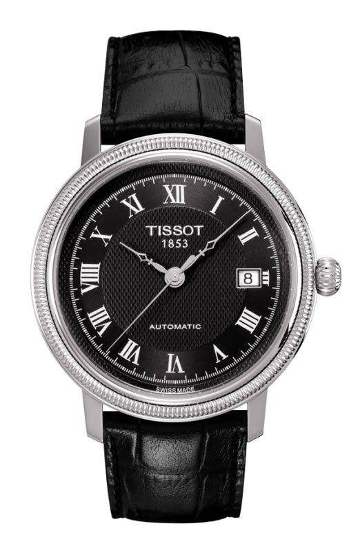 Tissot Watch Bridgeport. The Bridgeport automatic watch for gentlemen belongs to the T Classic collection, which signifies that the instrument is exceptionally elegant and classy. The timepiece is equipped with Swiss made ETA 2892 A2 automatic calibre that performs 28 800 vibrations per hour and has 21 bearing jewels. A 42 hour power reserve is available for the convenience of the wearer. A date display appears at the 3 o'clock mark. Additional useful features include polished stainless steel casing, black patterned dial, clasp engraved with the Tissot logo and scratch resistant sapphire crystal glass.