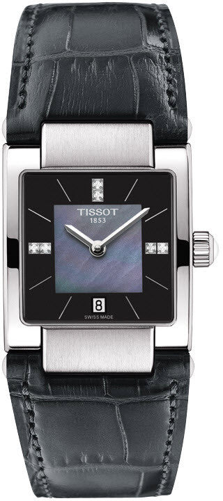 Tissot Watch T02. The T02 by Tissot is a watch of contrasts. Its design declares simplicity, while its components and materials are precious and technologically advanced. It is essentially a rectangular watch, yet its case reveals shapely curves with extravagance and understatement going hand in hand with some of the models having with diamonds on the case or on the dial tease the eye.