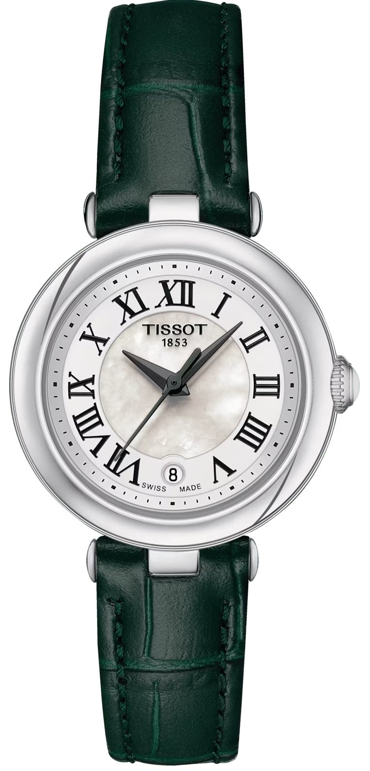 Tissot Watch Bellissima Green Leather T1260101611302. The delicate Bellissima has been designed to be worn during these magic moments and special occasions, to embrace your eternal beauty. Discover this trendy version with its dark green leather strap and matching hands. The perfect accessory for every season and every occasion.