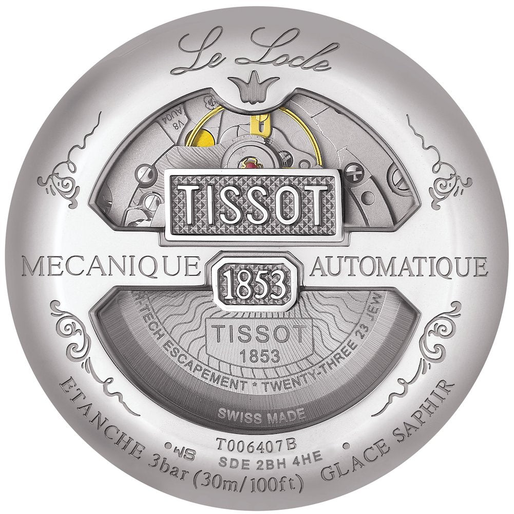 Tissot Watch Le Locle Mens Powermatic 80 T0064071103300. The name Le Locle seems to be a reliable ingredient of success. As well as being the name of Tissots home and heritage, nestled in the Swiss Jura Mountains, it is the name of a hugely popular automatic watch family. The models display exquisite elegance with details such as Roman numerals and a traditional Le Locle signature which complete the picture of classical chic. These finish off soave daytime and evening looks with a flourish.