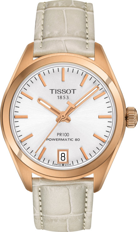 Tissot Watch PR100 Powermatic 80 Ladies T1012073603100. Tissot, with its signature Innovators by Tradition, has been pioneering craftsmanship and innovation since its foundation in 1853. The Tissot innovation leadership is enabled by the development of high tech products, special materials and advanced functionality. With a broader, more versatile range of high quality timepieces at an attractive price than any other Swiss watch brand, Tissot also expresses its commitment to making excellence accessible.