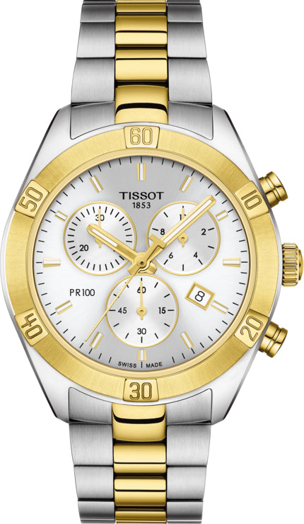 Tissot Watch PR100 Sport Chic Chronograph T1019172203100. True to its name, the Tissot watches PR 100 is certainly Precise and Robust and hugely popular with stylish men everywhere. These models combine tradition with up to the minute looks using quality materials on the outside and Swiss reliability on the inside.