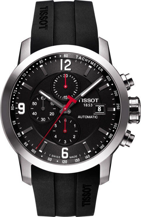 Tissot Watch PRC200 Chronograph T0554271705700. The Tissot PRC 200 is a popular range of the T-Sport watch collection that is built for performance and features Swiss quality and craftsmanship at an affordable price. This flagship collection of timepieces is available in a multitude of looks to compliment individual wants that can be worn formally to work or casually in your leisure time, these particular models being chronograph versions.