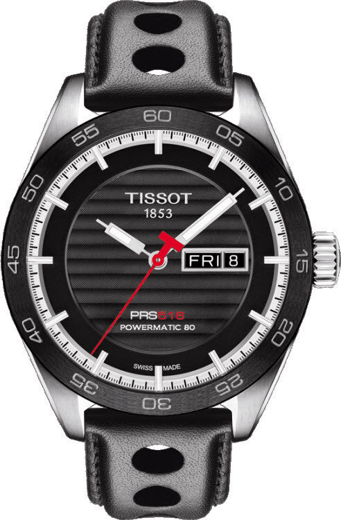 Tissot Watch PRS516 T1004301605100. Tissot PRS 516 series takes time to reflect on its 1960s motorsport inspired origins. Wearers of the Tissot PRS models are equipped with timepieces integrating the innovations in Swiss watchmaking to complement nostalgic design elements from the racetrack. On some of these models, the movement can be seen in action through the distinctive case back shaped like the steering wheel of a pioneering sports car.