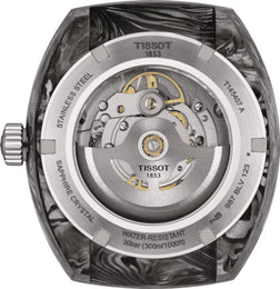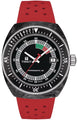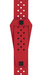 Tissot Watch Sideral S Red T1454079705702. Discover the Tissot Sideral, a captivating fusion of vintage allure and modern craftsmanship. The watch features a 41mm wide forged carbon case and a bold red strap. The dial presents a multi-coloured luminescent animation, amplifying its distinct appeal. Water-resistant up to 30 bar (300 meters) and equipped with Super-LumiNova coated indices, the Sideral is a statement piece for trendsetters and history enthusiasts. Effortlessly modify your look with the interchangeable perforated rubber strap. Make a statement with the Tissot Sideral.