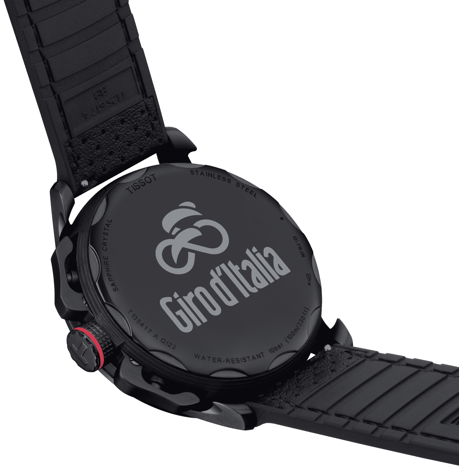 Tissot Watch T-Cycling Giro D'Italia Edition T1354173705101. A historic start in Budapest, brutal ascents through the Alps, and a ferocious fight to finish with with the maglia rosa in Verona, this years Giro will inspire people around the world. And the Tissot T-Race Cycling 2022 Giro d'Italia Special Edition is the perfect watch for them, bringing together Swiss precision and reliability with a classic design inspired by racing bikes. With the race logo engraved on the caseback and iconic pink trim on the second hands and crowns, wearing this watch will bring you closer to the glory in Italy.