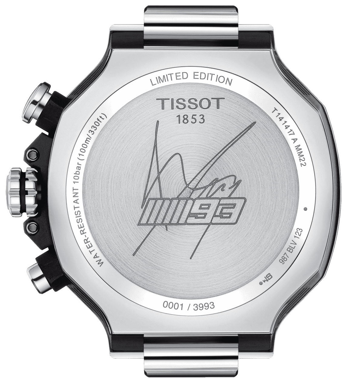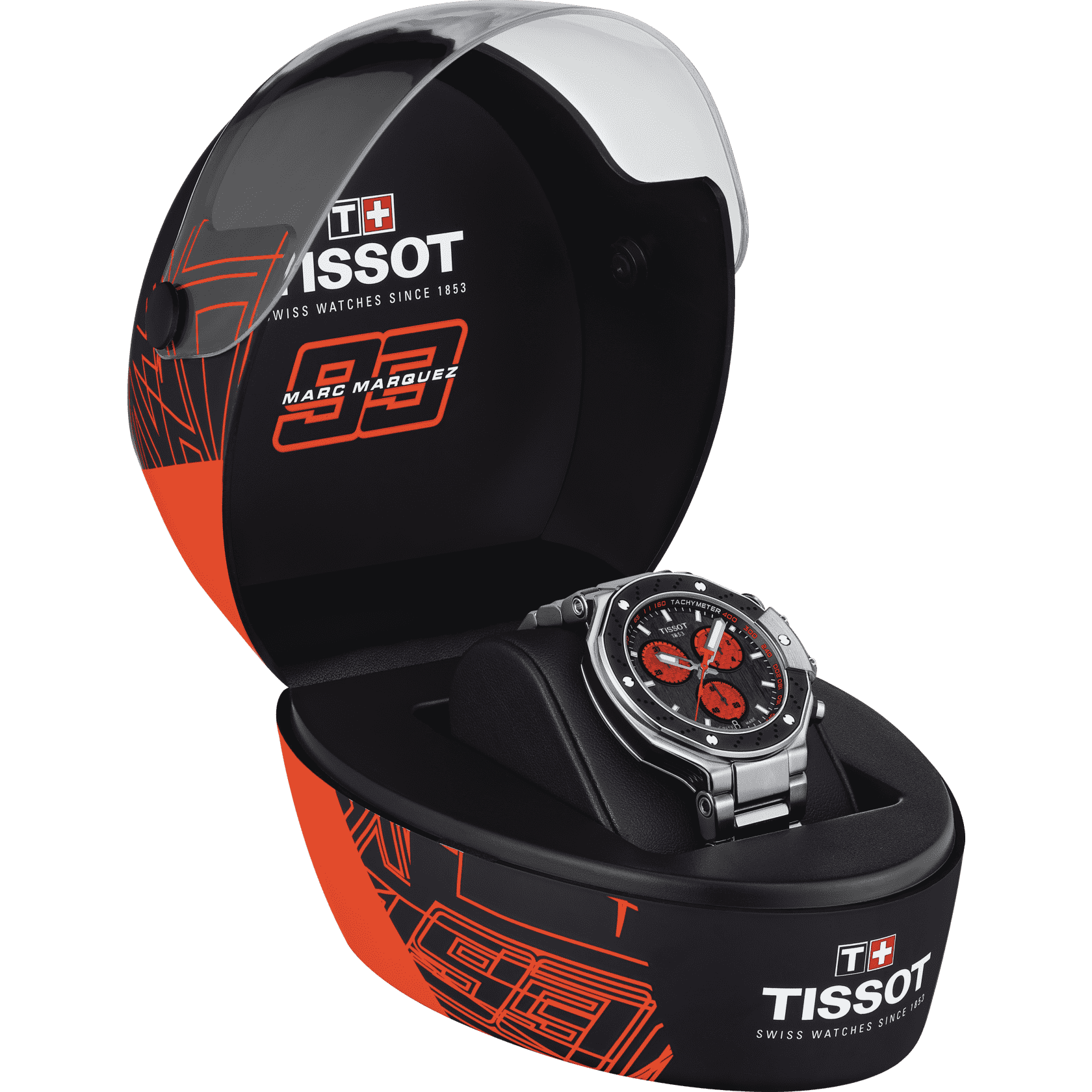 Tissot Watch T-Race Marc Marquez 2022 Limited Edition T1414171105100. Tissot likes to honour its many partnerships by creating dedicated watches to the events, sports and ambassadors it is associate with. Ensuring visibility under all conditions is an important goal for Tissot. This is why some timepieces feature a material we call SuperLuminova. This material is placed on visible parts such as dials and hands, where it functions as a miniature accumulator of reflected light when the watch finds itself in the dark.