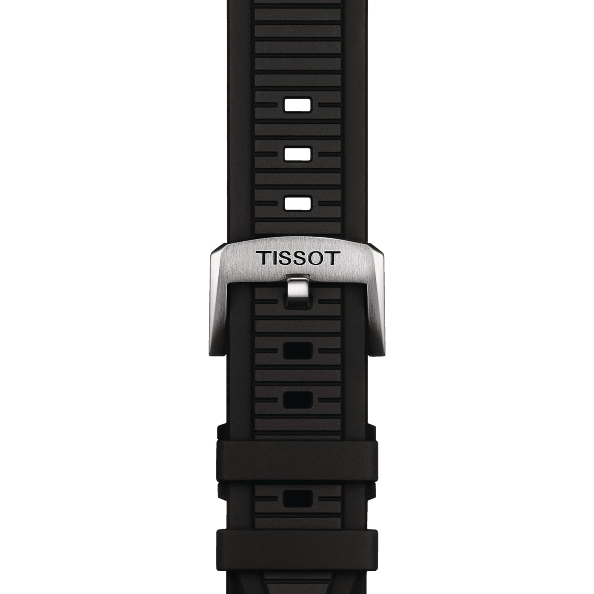 Tissot Watch T-Race Powermatic 80 T1418071705100. Tissot has drawn inspiration from its partnership with motorcycle racing to create a watch that reflects the dynamism of motorcycles and the emotion of the sport. The see-through case back is a window to heart of this timepiece: equipped with the Powermatic 80 movement featuring a Nivachron balance spring, the T-Race Automatic redefines what is possible, on and off the road. The bezel and crown protector are inspired by the brake disc and its calliper. Embrace a riding experience that seamlessly merges motorsports passion and innovation with this beautifully crafted watch, featuring a deep black dial and a matching rubber strap.