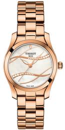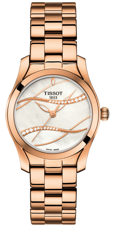 Tissot Watch T-Wave T1122103311100. The Tissot T-Wave is a stunning timepiece. Its line flows around your wrist, following the natural course as it swirls by the edge of the bracelet. This piece takes pride in the instinctive formations of subtle T-shaped silhouettes evoking the designer, while the fine hands and their petal-like expressions are testifying to the watch̥s water-flower essence. This smooth and calming creation is complimented by a beautiful dial. The many details and seductive lines of the Tissot T-Wave capture the spirit of femininity.
