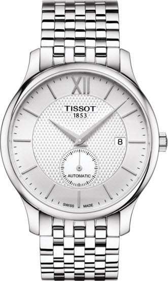 Tissot Watch Tradition Automatic Small Second T0634281103800. The Tissot Tradition family gives ultra modern watchmaking a justified hint of nostalgia, giving todays technology a vintage style design signature. High tech operation is perfectly balanced with classical details and subtle vintage look finishes. These are complemented by design elements such as guilloche decoration and a gently curved case. The Tissot Tradition promises wearers endless hours of precision with sustainable good looks.