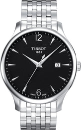 Tissot Watch Tradition Mens T0636101105700. The Tissot Tradition family gives ultra modern watchmaking a justified hint of nostalgia, giving todays technology a vintage style design signature. High tech operation is perfectly balanced with classical details and subtle vintage look finishes. These are complemented by design elements such as guilloche decoration and a gently curved case. The Tissot Tradition promises wearers endless hours of precision with sustainable good looks.
