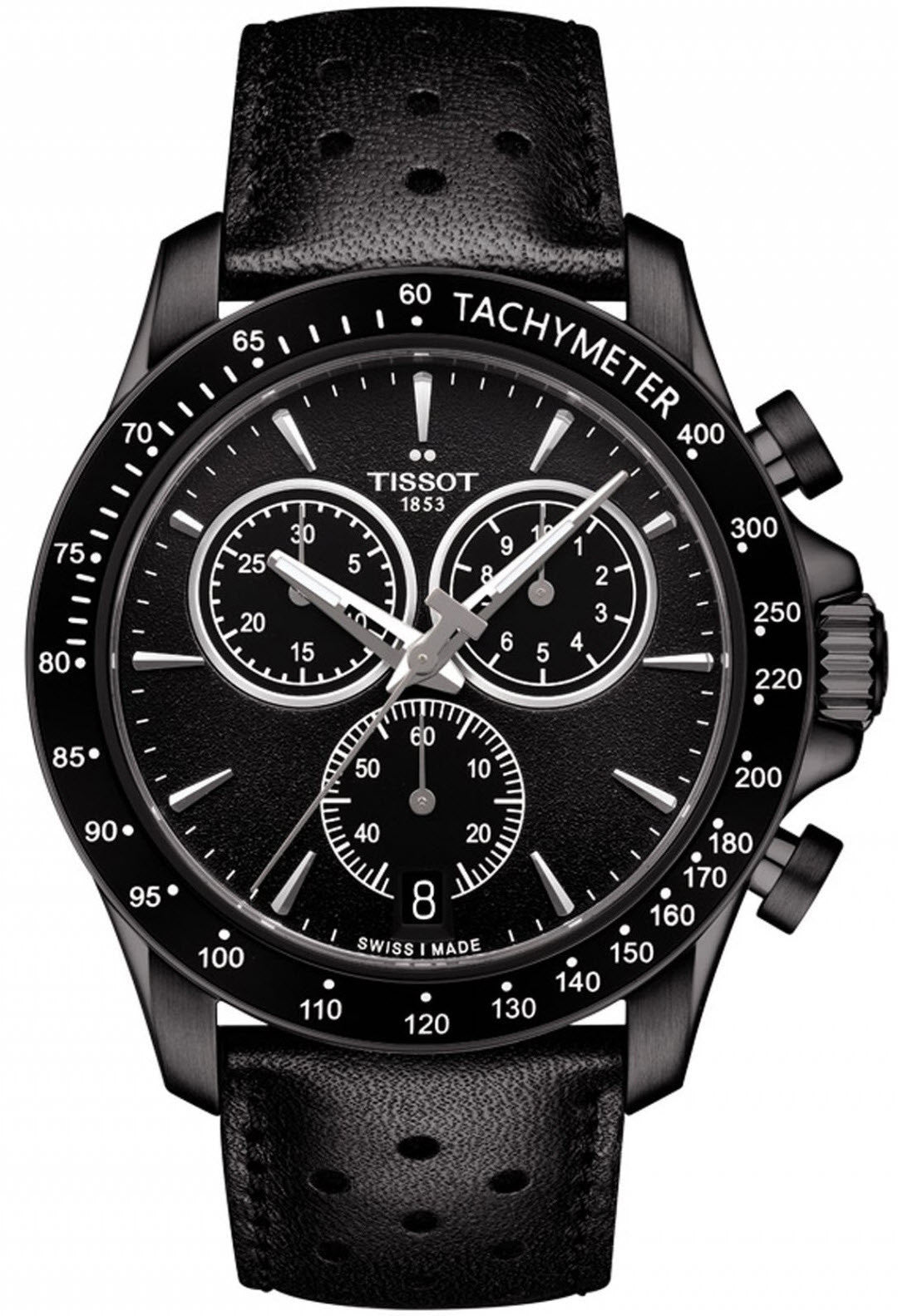 Tissot Watch V8 T1064173605100. The Tissot V8 is a powerful engine for the wrist. The bold chronographs confidently take their positions on the Tissot product grid with their dashboard inspired counters, which are punctuated by clearly marked digits at 12, 4 and 8 o clock in a modern typeface, and tachymeter bezels. The Tissot V8 models will appeal to wearers with a good dose of adrenalin in their lives and zero tolerance for missing out on the action.