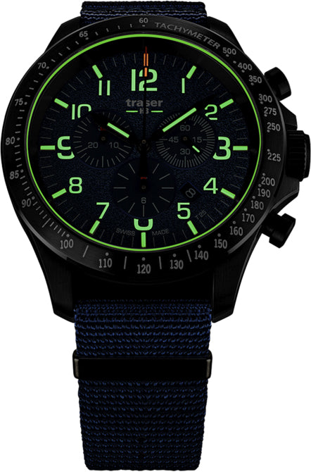 Traser H3 Watch P67 Officer Pro Chronograph Blue 109461. From the beginning, traser has pioneered the utmost innovation and always pushed limits of what is possible. Already in 1989, after a period of intensive research and engineering, the traser P6500 Type 6 was developed. This was the first self-illuminated watch ever produced. THE ORIGINAL. The P6500 Type 6 was supplied to the US Army, which defined the brand‘s personality and had a great impact on what it stands for today. The Tactical collection incorporates traser‘s roots with highly resistant materials, uncompromising functionality, robust design and a strong appearance. Keeping the tactical spirit alive. The reliable companion for professionals, adventurers and explorers.