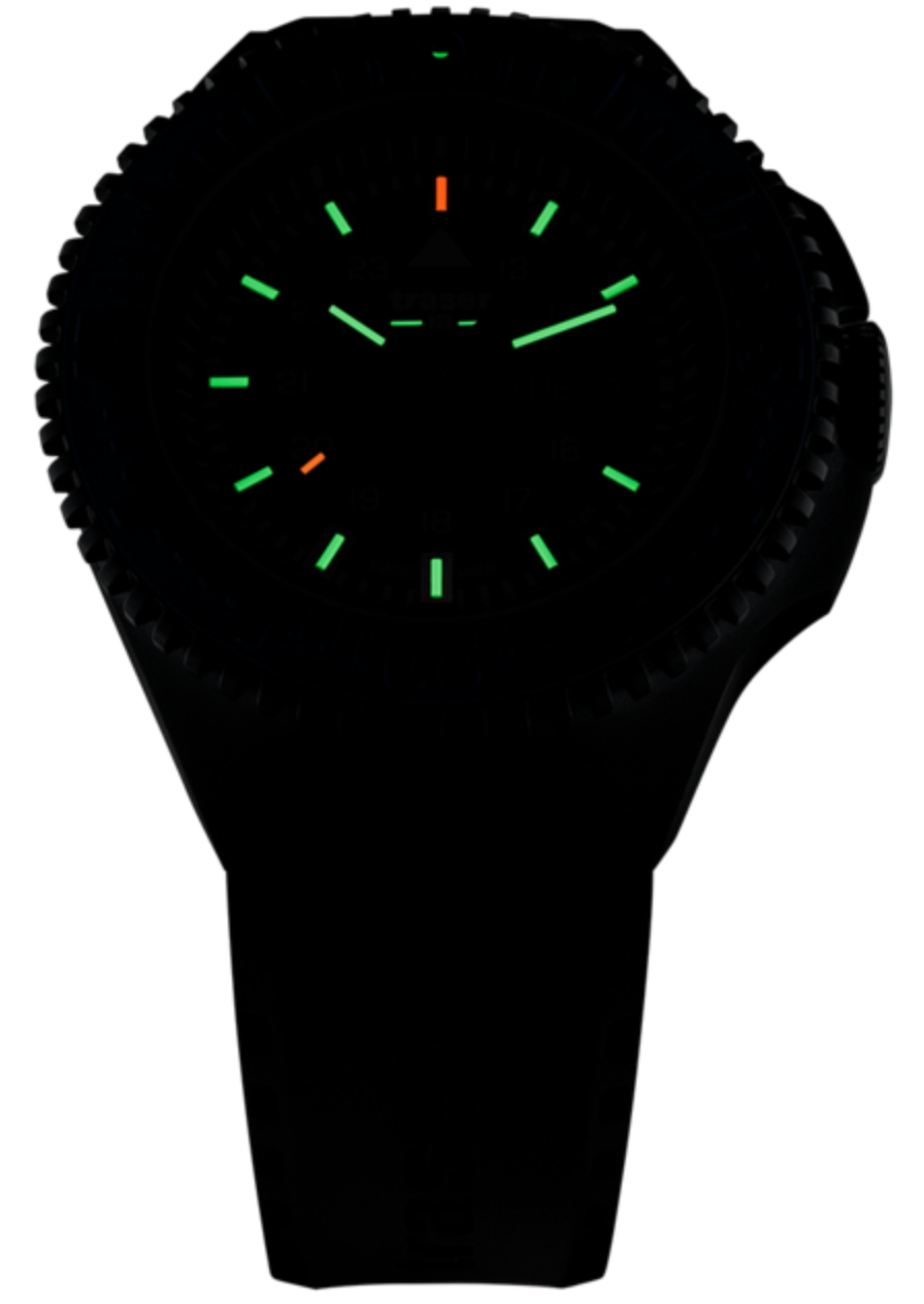 Traser H3 Watch P69 Black Stealth Black Rubber 109855. Traser H3 timepieces are mostly known as top military watches. They are made in Switzerland and the history of the company dates back to the 1970s. One of Traser H3’s most unique features is the utilisation of Gaseous Titanium Light Sources (GTLS).
