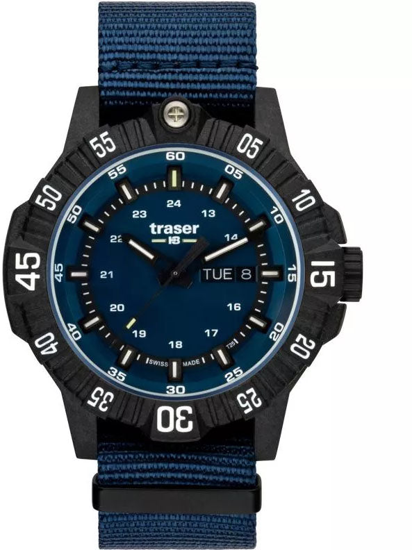 Traser H3 Watch Tactical P99 Q Blue Nato 110724. From the beginning, traser has pioneered the utmost innovation and always pushed limits of what is possible. The Tactical Adventure collection incorporates trasers roots with highly resistant materials, uncompromising functionality, robust design and a strong appearance. Keeping the tactical spirit alive. The reliable companion for professionals, adventurers and explorers.
