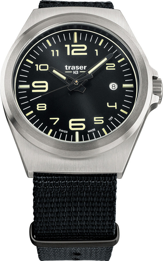 Traser H3 Watches P59 Essential M Black Dial 108638. Traser H3 timepieces are mostly known as top military watches. Traser H3 watches are made in Switzerland and the history of the company dates back to the 1970s. One of Traser H3s most unique features is the utilization of Gaseous Titanium Light Sources.