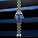 - Anti glare sapphire crystal glass protecting a rich blue dial