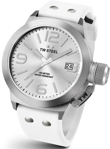 TW Steel Watch Canteen TW535. Enjoying a vibrant style, the overall look of this Canteen edition is completed with a crisp white silicon strap.