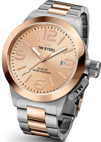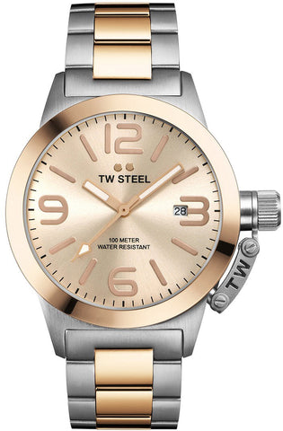 TW Steel Watch Canteen TWCB404. Canteen Style is a modern classic. This model features a 2-tone brushed steel case with PVD rose gold plating with sunray rose gold dial.