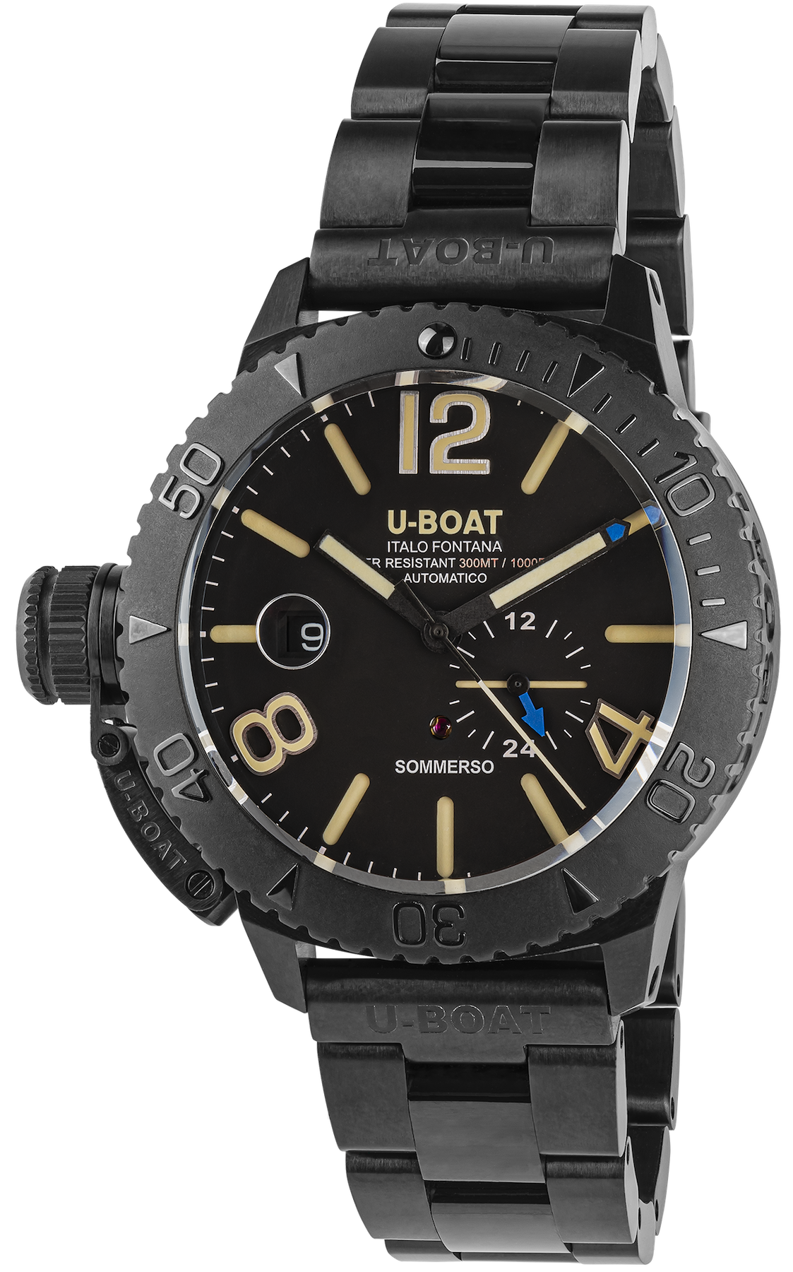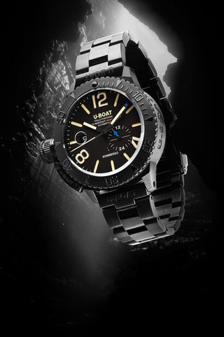 U-Boat Watch Sommerso 46mm DLC Bracelet 9015/MT. Total Black Diving. The Sommerso DLC features a rotating bezel and water resistance up to 300 meters. The case and the bracelet are made of steel with a special ultra-resistant DLC (Diamond-like Carbon) coating.