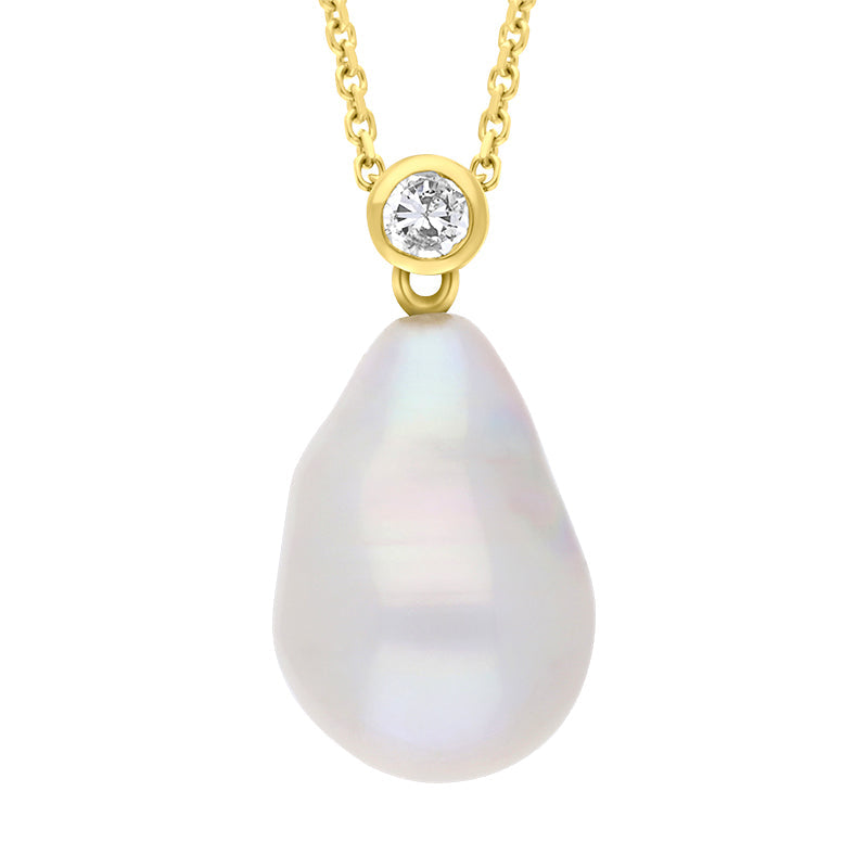 18ct Yellow Gold Diamond and Pearl Unique Pendant - PUNQ0009874 (UNQ-9335)