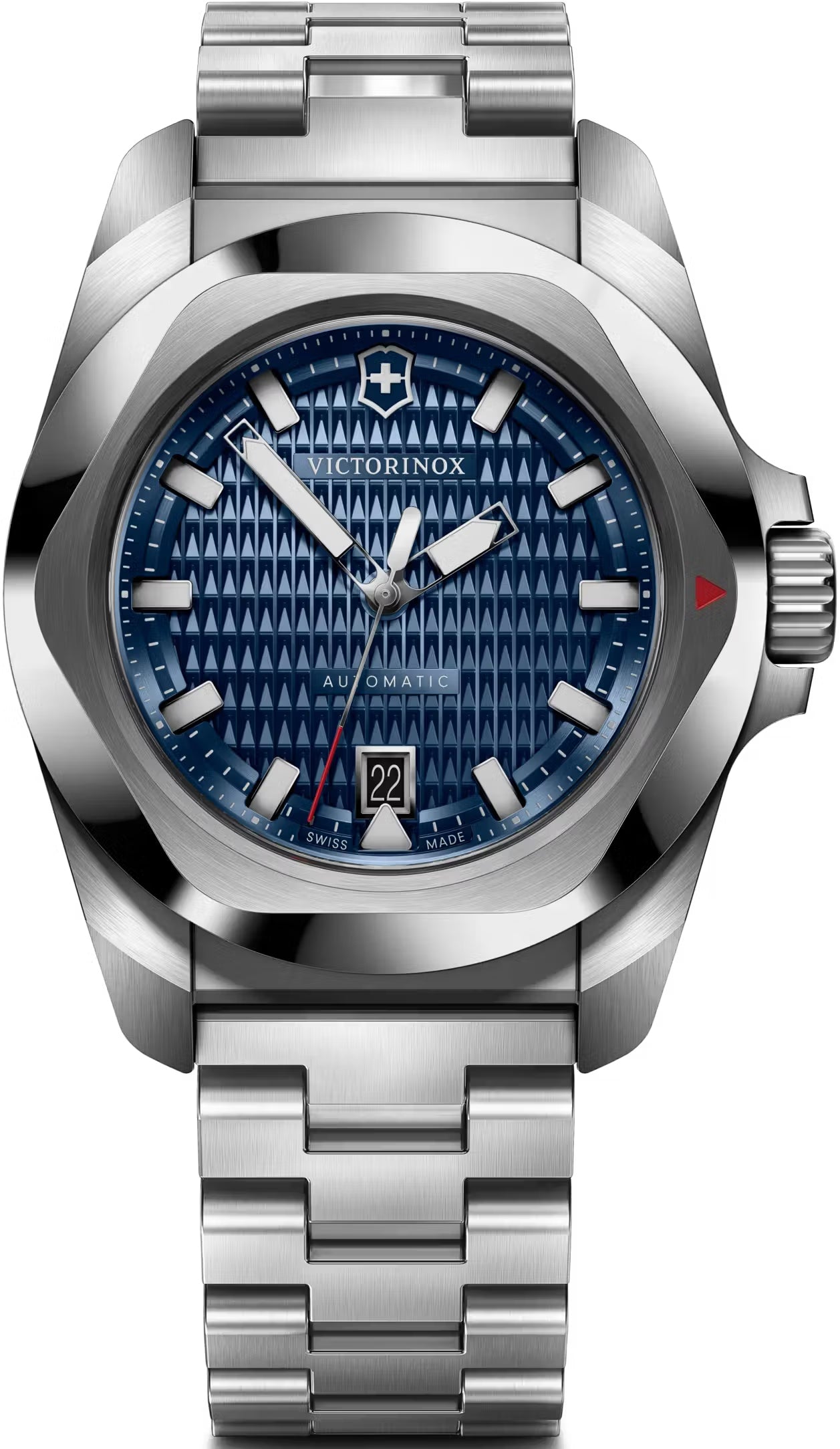 Victorinox I.N.O.X. Automatic Watch 242020. A study in metal crafting and resilience, I.N.O.X. Automatic has its roots in industrial artisanship. Created with high-tech precision by Victorinox horologists, this is a timepiece of strength and standout performance. Built to take control of any conditions, it has powerful anti-shock credentials, plus a 200 m level of water resistance. Strap it to your wrist and master the day.