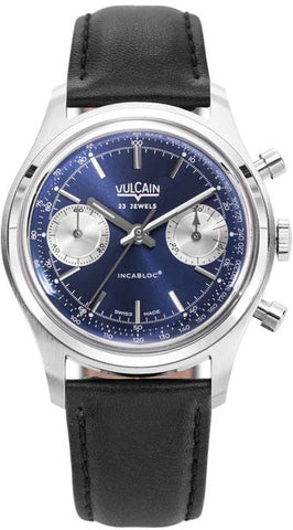 Vulcain Watch Chronograph 38mm Blue 640109A30.BAC201. The Vulcain watch manufacturer was founded in 1858 and is the inventor of the alarm complication for wristwatches. This innovation made the Vulcain watches popular with American presidents starting with Harry S Truman, earning the brand its reputation as, The Watch for Presidents.
