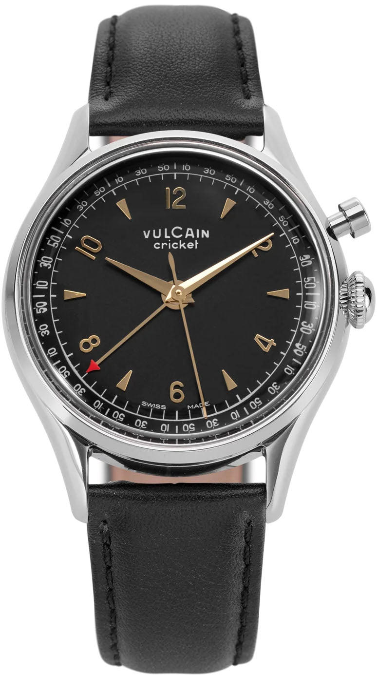 Vulcain Watch Cricket Tradition 36mm Black & Gold Leather 100169A06.BAC301. The Vulcain watch manufacturer was founded in 1858 and is the inventor of the alarm complication for wristwatches. This innovation made the Vulcain watches popular with American presidents starting with Harry S. Truman, earning the brand its reputation as “The Watch for Presidents.
