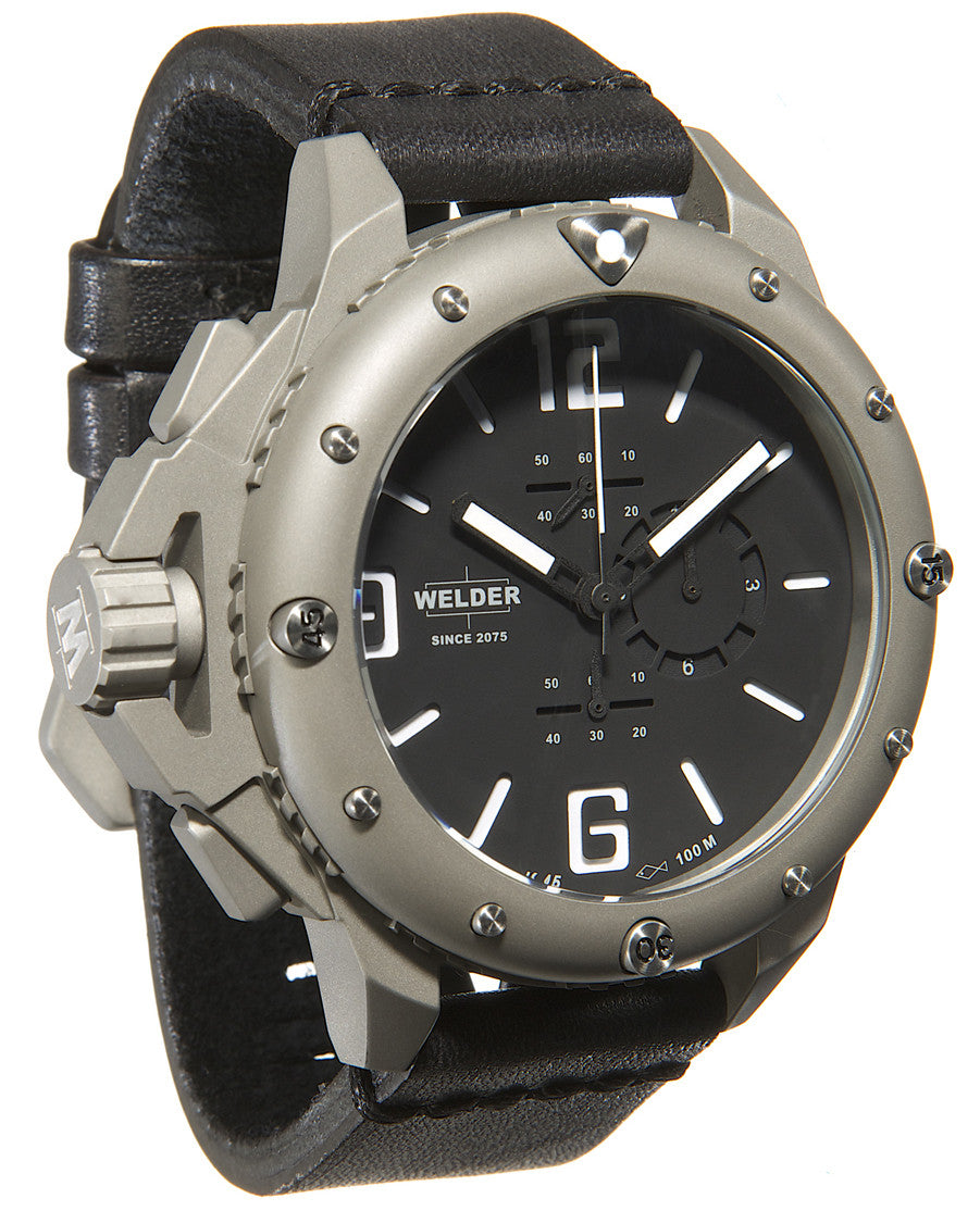 Welder Watch K45 2702. Welder watches produces stylish, functional watches, some of them designed especially for people wearing the timepiece on the right hand. Dial faces are three dimensional and relatively large.