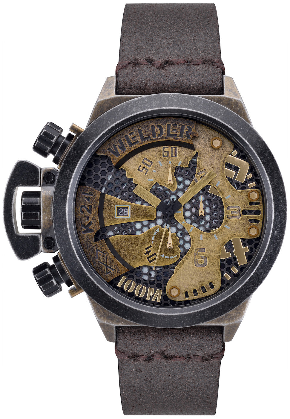 Welder Watch The Bold K24 WRK2405. Jump into the wild, original, ironic, unexploited. Discover the outstanding collection of Welder the Bold. The crown and pushers placed at the left side of the case is the signature of Welder watches and now in this collection it is more attractive.