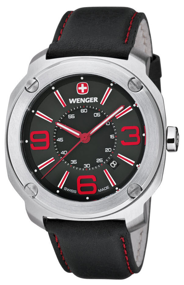 Wenger Watch Escort. The WENGER ESCORT's softly rounded cushion shaped case, brings a new design element to the WENGER collection. A cross between vintage and contemporary, soft contours and a solid 316L stainless steel frame, the WENGER ESCORT fully embodies the multi environment purpose synonymous with the WENGER Timepiece Collection. This watch will ESCORT you during all of your yearly activities may they be social, professional, leisurely or sport oriented.