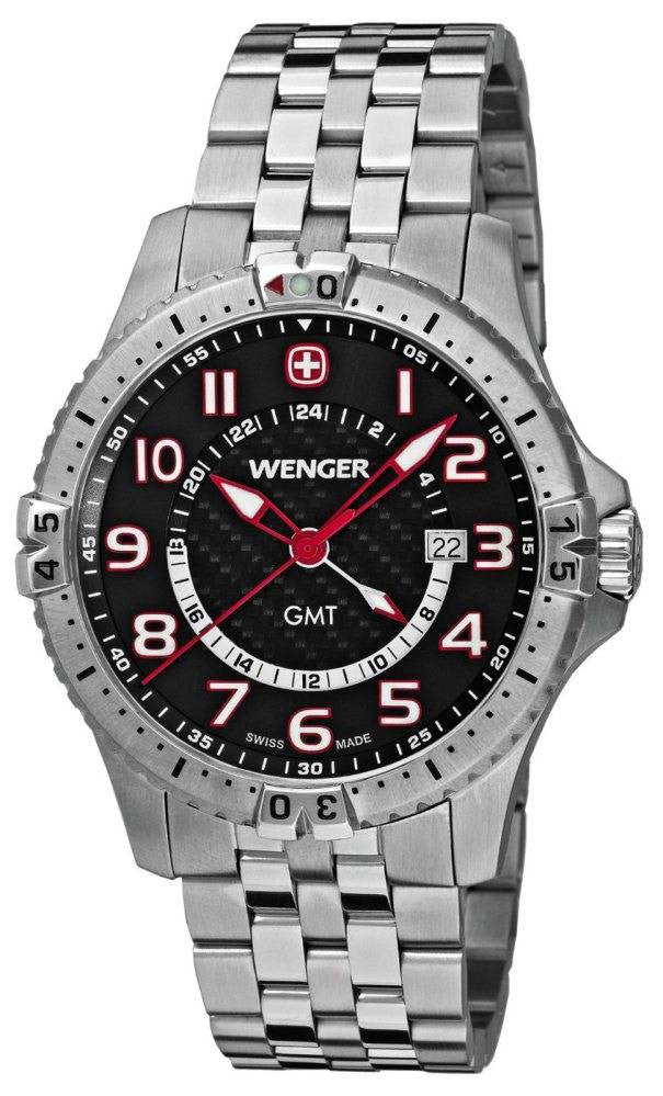 Wenger Watch Squadron GMT Bracelet. The WENGER SQUADRON is a timepiece dedicated to the search and rescue squadron pilots worldwide, who are always prepared to assist the unfortunate active outdoor aficionados who find themselves off course or in even worse predicaments. These airmen rely on their timepiece for accurate and legible time keeping, dead reckoning navigation as well as a host of other related time keeping factors of importance, such as stop watch, countdown or elapsed mission time.
