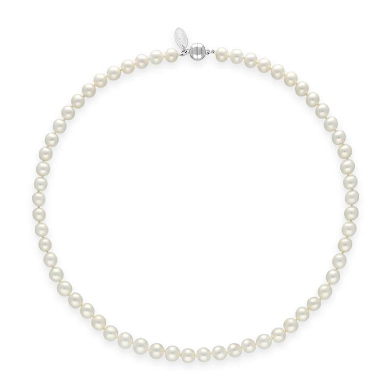 This stunning necklace features 8mm, round white pearls strung together with a 10mm sterling silver magnetic ball clasp, for ease and added security. A classic and beautiful addition to any jewellery collection, perfect for every day wear.