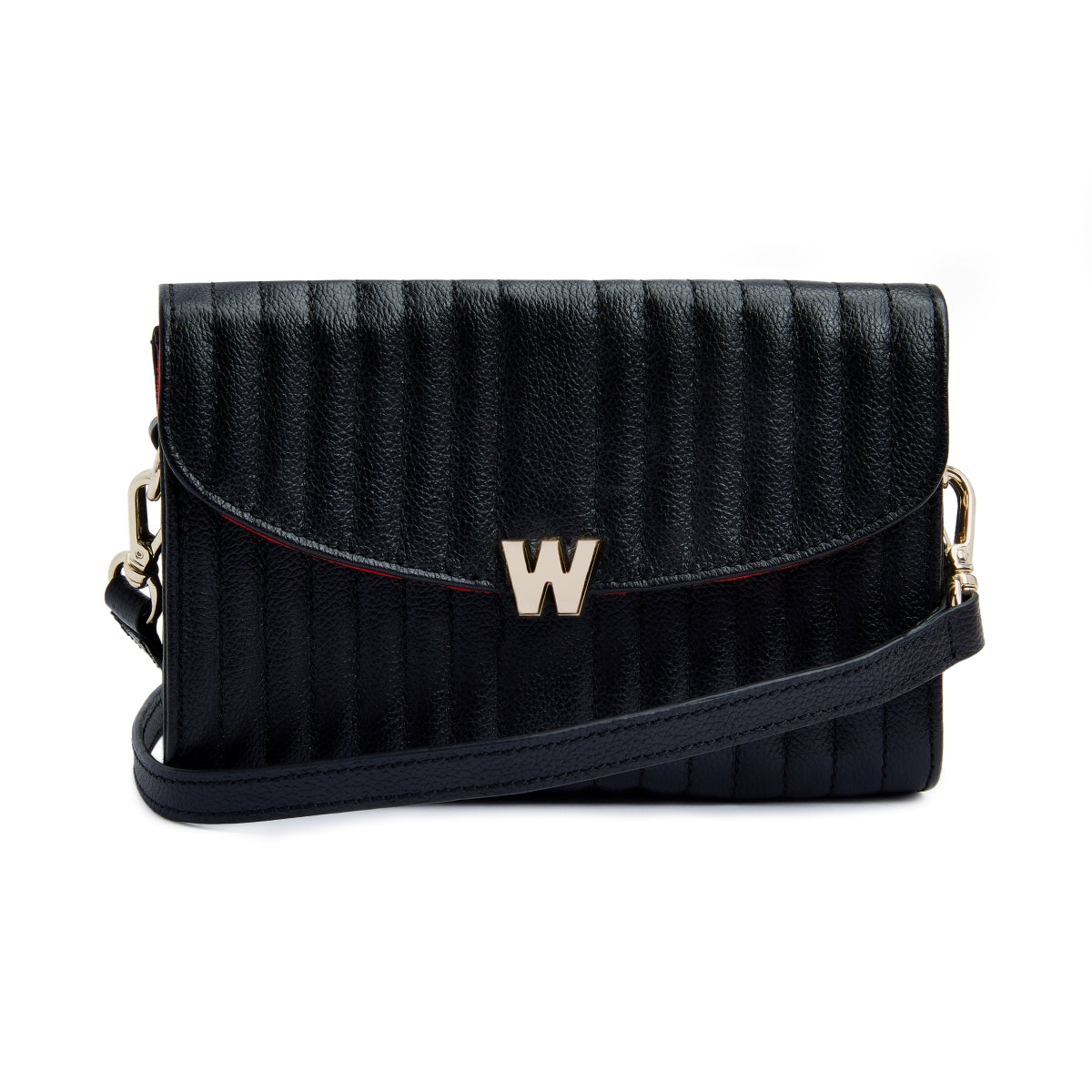 Wolf Mimi Collection Leather Black Crossbody Bag with Wristlet, 768302