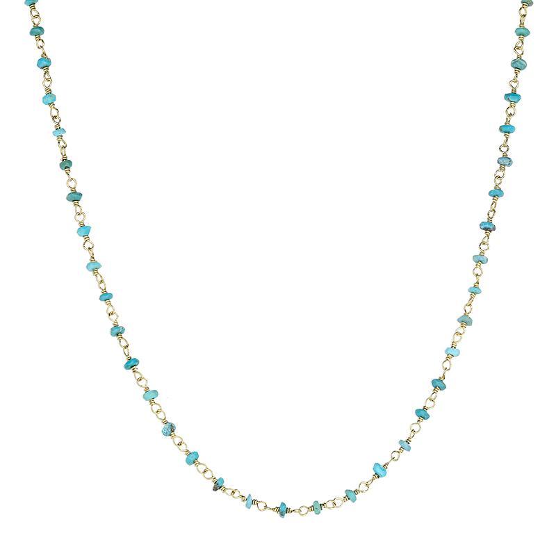 This Turquoise and yellow gold plated sterling silver C W Sellors necklace features 3mm sized Turquoise gemstones, set on a delicate yellow gold plated sterling silverd sterling silver chain link necklace.  A perfect gift for someone special.