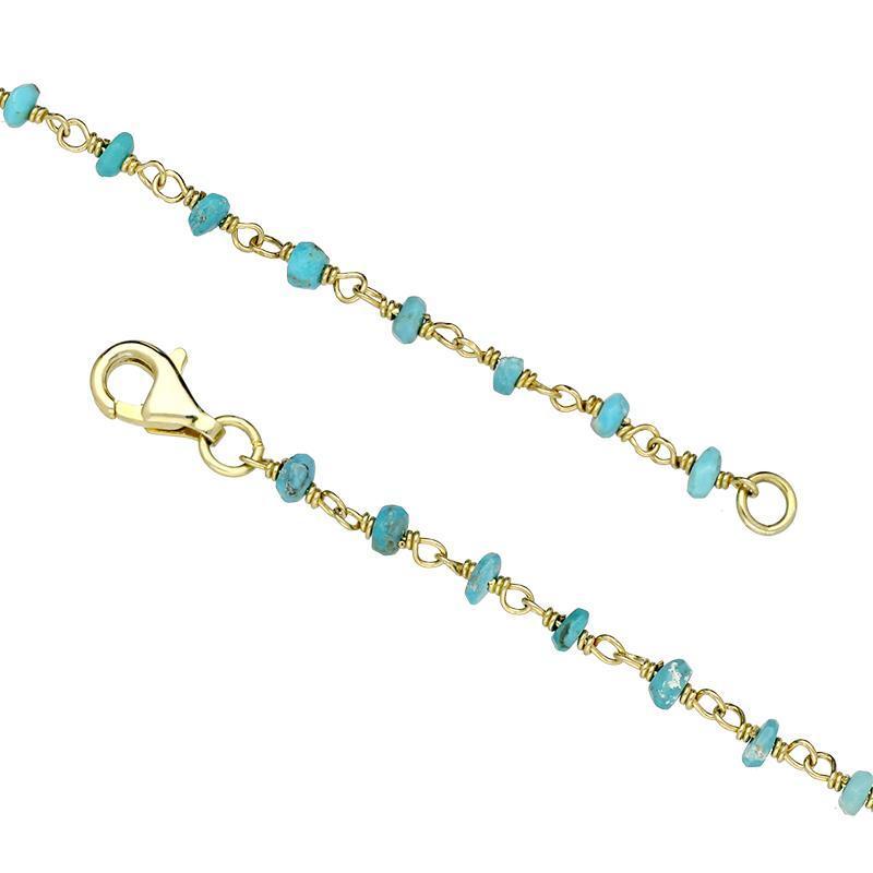 Yellow Gold Plated Sterling Silver Turquoise 3mm Bead Chain Link Necklace