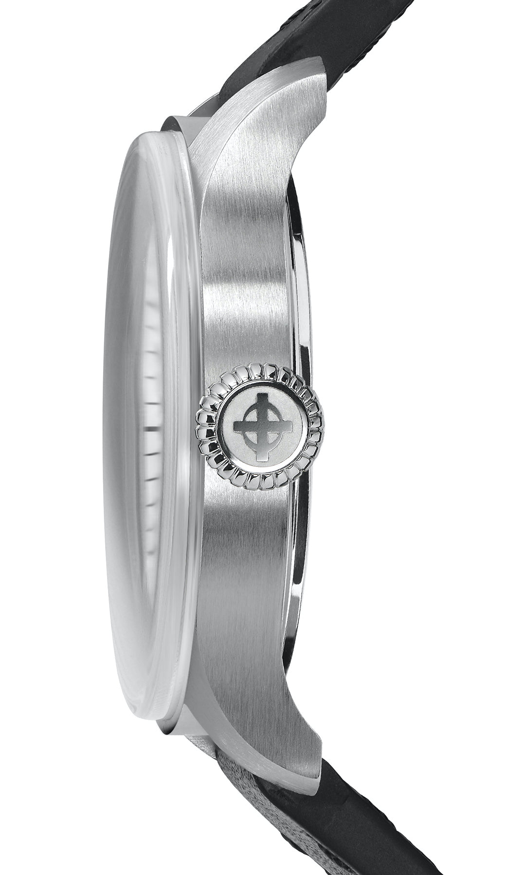 The Jetomatic Limited Edition is a homage to the original Zodiac Pilot watch from the 60s. This watch features a box type K1 scratch resistant mineral glass, domed dial and curved hands, 40mm stainless steel case and black leather strap. The large numerals and Super-LumiNova print allow readability in all conditions and an oversize crown for time setting even with gloved hands.