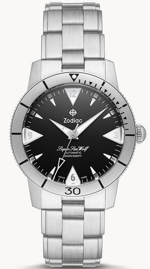 Zodiac Watch Super Sea Wolf 53 Skin Automatic ZO9213. Zodiac watches have dedicated themselves to excellence in precision, design, and craftsmanship associated with authentic Swiss horology. By consistently pushing the limits of design innovation, the Zodiac style has evolved, and our watches have become more technical and dynamic, while staying true to our Swiss roots and quality that put us on the map.