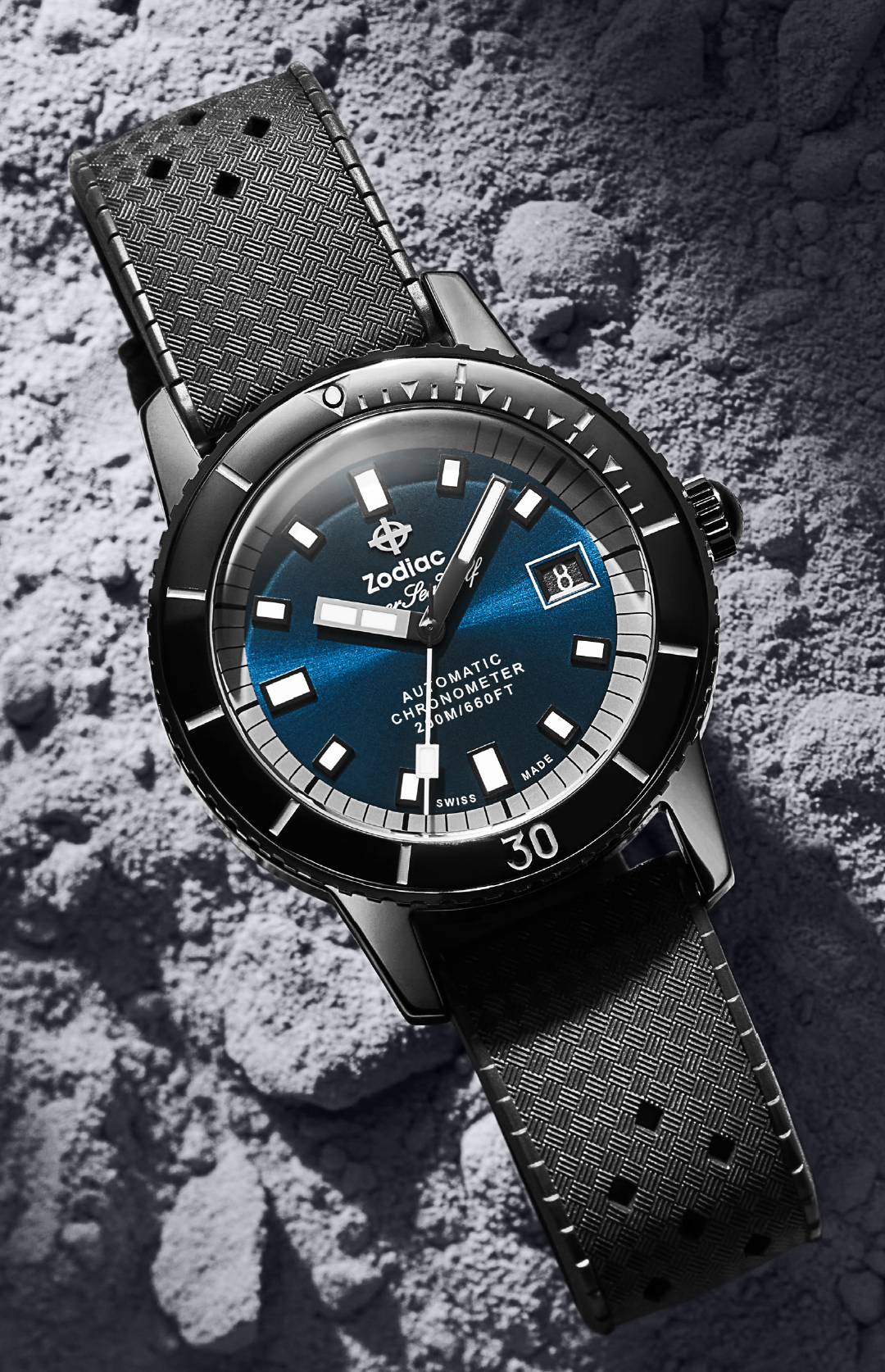 Zodiac Watch Super Sea Wolf Ceramic ZO9595. For 140 years, Zodiac has dedicated itself to the precision and craftsmanship associated with Swiss timekeeping, all while pushing boundaries to create highly technical and dynamic timepieces. And that means exploring new, innovative materials like those featured on our new Super Sea Wolf Ceramic. Inspired by the depths of the ocean and the durability needed to explore the unknown, this Super Sea Wolf is crafted from a high polish, hardened ceramic with a steel core for ultimate performance and longevity.